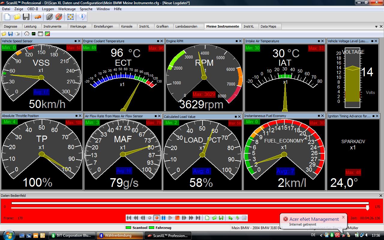 Als Software kann ScanXL von Palmer oder ScanMaster-ELM verwendet werden.