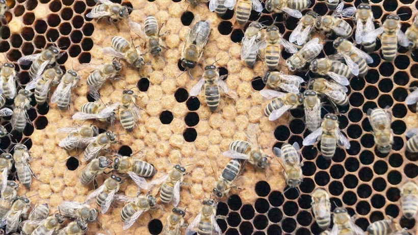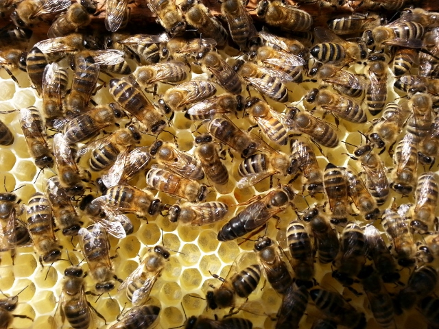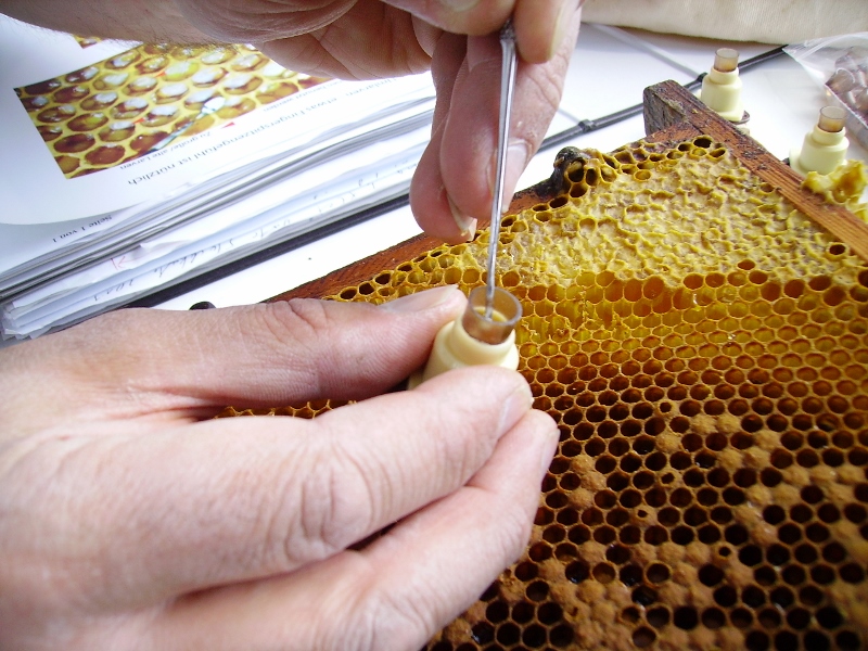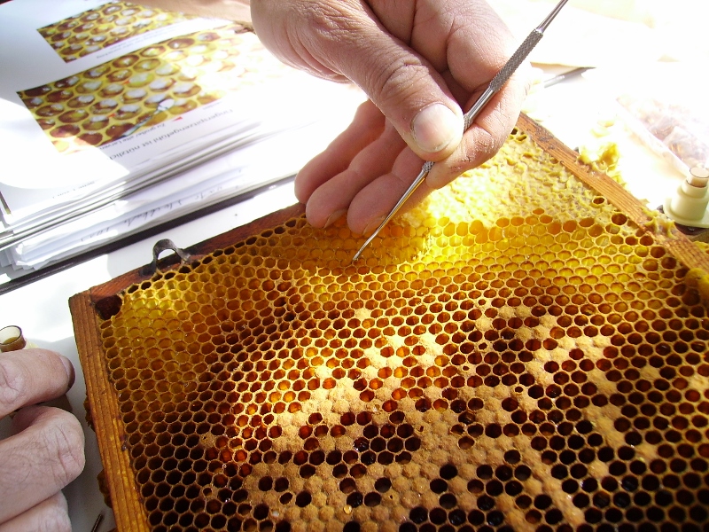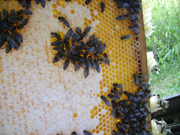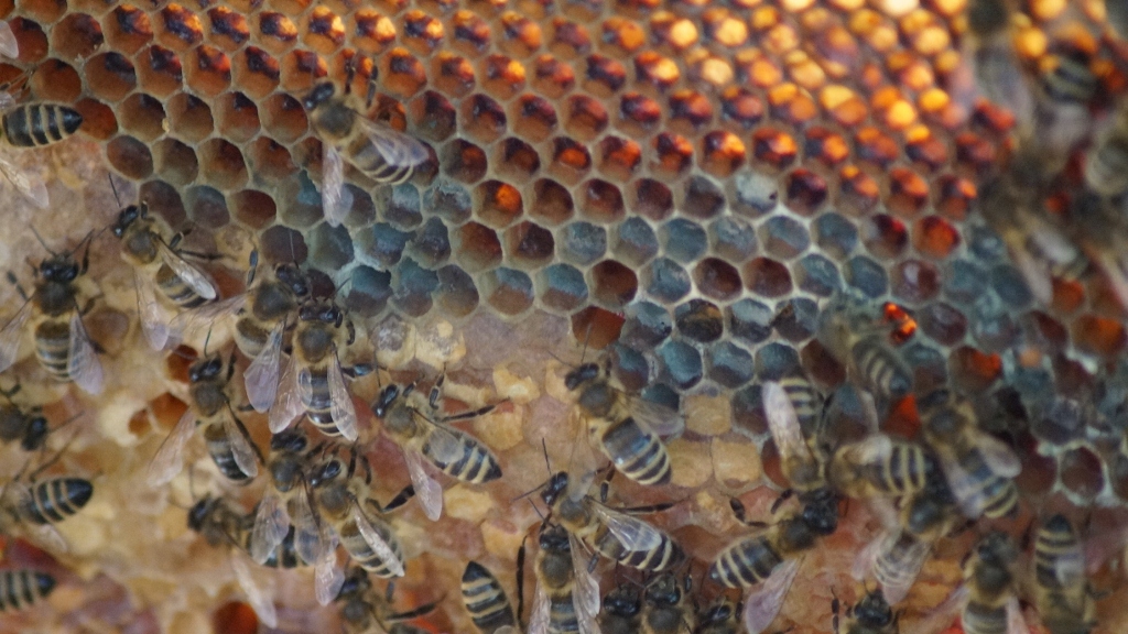 Wabenbau Verdecklung von Brut und Honigzellen |