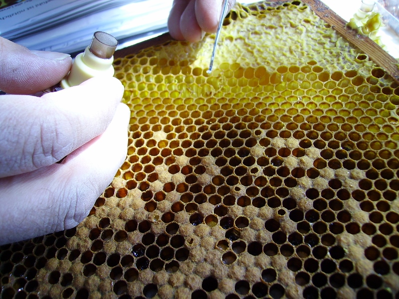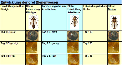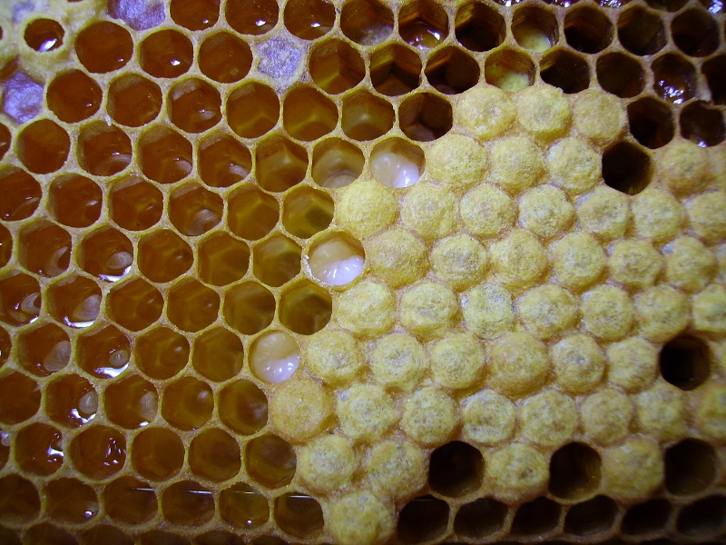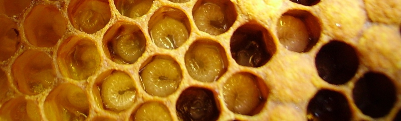 Gelee Royale | Gelée Royale ist der Futtersaft, der von den Ammenbienen zur Königinnenaufzucht erzeugt wird. | Nahrung für Königinnenlarven, damit eine Königin entsteht. | Es wird als stärkendes und anregendes Mittel angesehen, welches die Ernährung ergänzen kann. Dient aber auch als Beimischung in kosmetischen Produkten. | ![]() |