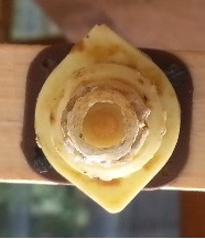 Kittharz Überziehen z.B. alle Innenflächen des Bienenstockes und auch die Waben mit einer hauchdünnen Schicht Propolis. Auch Risse und Spalten in ihren Behausungen werden damit verkittet. |