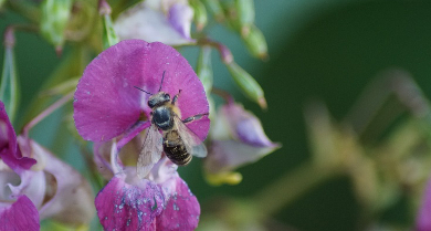Männliche Keimzelle der Blütenpflanzen Beim Befliegen der Blüte heften die Bienen viele tausend kleinste Pollenkörnchen an ihre Hinterbeine und tragen sie zu ihrem Stock |