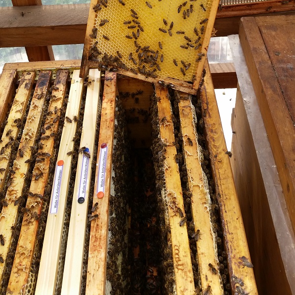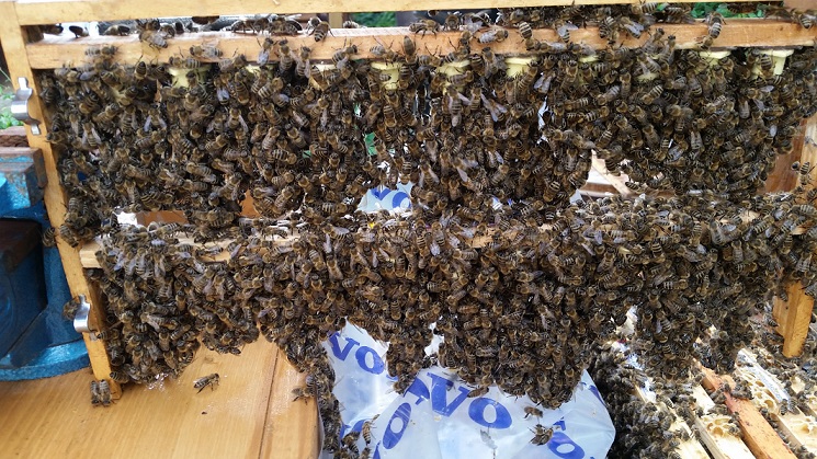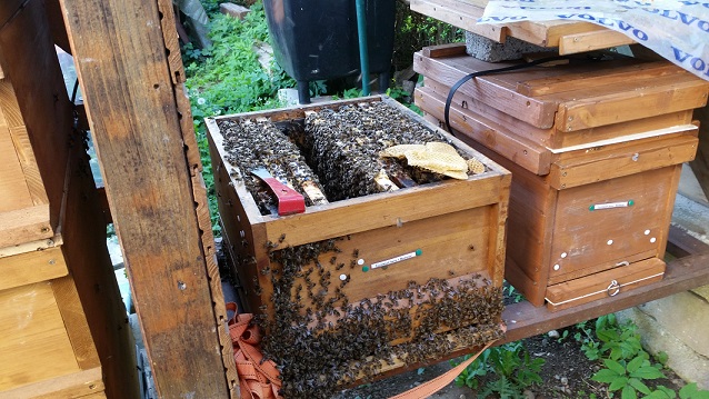Tätigkeit heute: | Markierte verdeckelte Brutwaben abkehren und über Absperrgitter hängen. Kann alternatiev auch morgen, früh morgens gemacht werden |