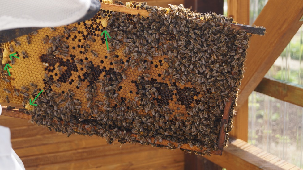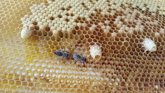 Tätigkeit heute: | Verdeckelte Nachschaffungszellen in Pflegevolk brechen offene stehen lassen; Bei Bedarf heute Ableger bilden um "9 Tage" alte verdeckelte Weiselzellen zu verwerten. |